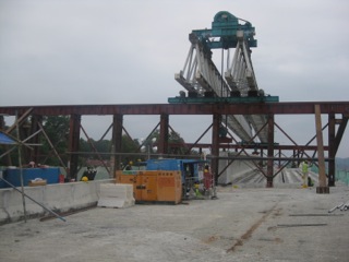 MASA Jurutera has completed a design and detailing job of gantry crane for precast beams erection. The erection gantry is used to lift the precast beams individually and placed on the support. The erection gantry is required because of poor ground condition at site.